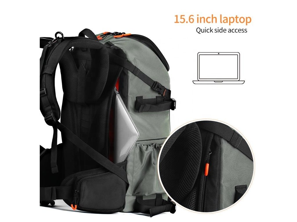 „1, capacitate mare: 2 camere + 6 lentile, compartiment pentru laptop de 15,6”, cu geantă interioară detașabilă