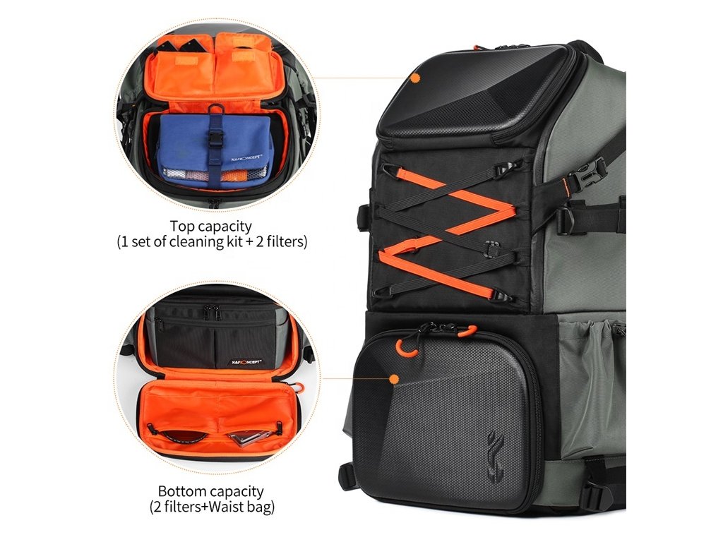 2) Carcasă de protecție dură frontală, design elastic frontal poate fi folosit pentru UAV, cască, cort exterior etc., geanta interioară poate fi folosită separat, cu fermoar impermeabil de nivel 5; lateral deschis acces rapid, cu centura de protectie