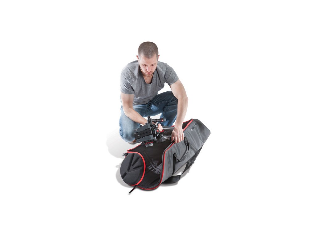 Geanta are un design asimetric pentru a găzdui trepiedele care au capul mai lat și mai mare. Forma conică este adaptată pentru trepiedul dumneavoastră Manfrotto, dar vă permite să-l îndepărtați cu un efort minim. Căptușeala Manfrotto Thermoform vă protejează capul trepiedului în interiorul pungii.