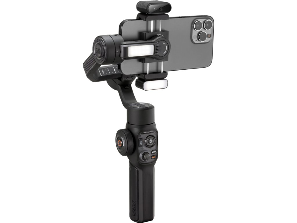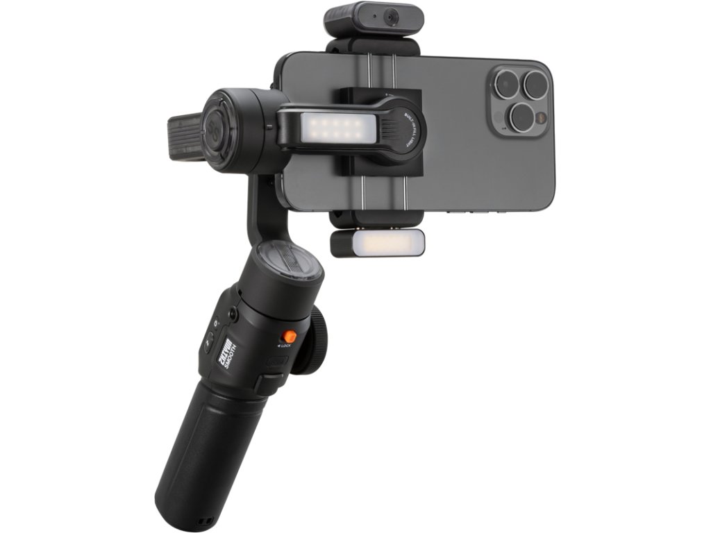Axa de înclinare este echipată cu o lumină de umplere de înaltă performanță, care se mândrește cu o intensitate maximă a luminii de 650 de lux. Două lumini de umplere magnetice suplimentare pot fi montate cu ușurință magnetic (1 bucă de lumină de umplere este inclusă în acest kit Pro, iar altele sunt vândute separat), combinându-se cu unitatea încorporată pentru a oferi un efect de iluminare de neegalat de vârf de 2040 lux.Aplicații Smart Capture, Stacam și ZY Cami