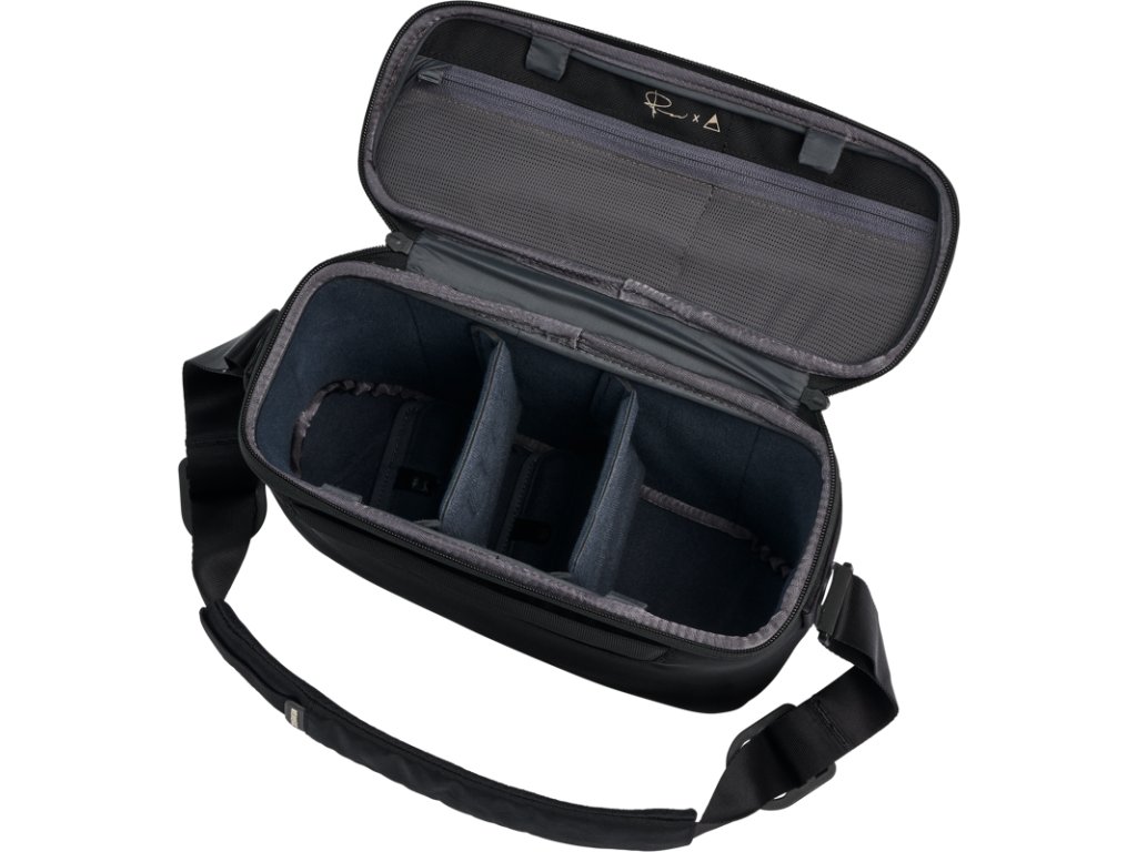Luma Camera Sling 12L este o geantă compactă pentru fotografi. În ciuda siluetei sale subțiri, Luma Camera Sling 12L este înșelător de încăpător și poate ține o cantitate impresionantă de echipament. Dacă preferați să vă iertați un rucsac voluminos, această sling se va dovedi prin interiorul său generos. În interior, există separatoare personalizate cu rafturi care permit organizarea flexibilă a echipamentelor adaptate nevoilor dumneavoastră specifice.Partea superioară se deschide complet pentru acces instantaneu, fără probleme, căptușită cu buzunare interne pentru obiecte esențiale mici și un buzunar extern conceput pentru articole cu acces rapid, cum ar fi telefoanele. Închiderea magnetică asigură că echipamentul dumneavoastră rămâne protejat și în siguranță.