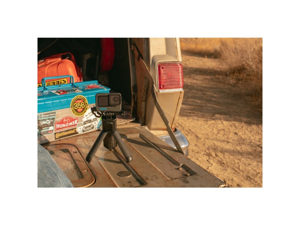 - Trepied încorporat – ori de câte ori aveți nevoie, puteți plia picioarele încorporate și puteți transforma mânerul într-un trepied la îndemână. În combinație cu o baterie externă, devine un ajutor perfect atunci când faceți fotografii time-lapse. Construcția mânerului este rezistentă la intemperii și se protejează pe sine și camera de ploaie și zăpadă. În același timp, ține cont și de natură, deoarece 35% din piesele din plastic sunt realizate din materiale reciclate.