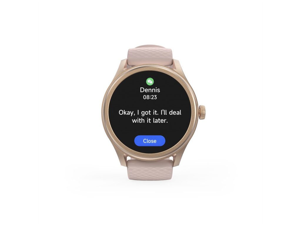 - ceas inteligent cu funcție de telefon, notificări, monitorizare a funcțiilor corpului și multe alte funcții pentru un stil de viață modern și activ - afișaj TFT-LCD full-touch, ușor de utilizat, de 1,38" - asistent vocal Siri sau Asistent Google; direct de pe ceas te poți conecta cu asistentul vocal de pe telefonul mobil - primirea/efectuarea apelurilor folosind ceasul, prin Bluetooth, chiar si fara telefon mobil; ideal de ex. atunci când gătești, lucrezi în grădină, în timpul sportului sau când te miști - notificare de mesaje (WhatsApp, Facebook, Instagram etc.), e-mailuri, apeluri folosind vibrații și notificări pe afișaj, unde puteți citi imediat mesajele - rezistent la apa conform standardului IP68, potrivit pentru toate activitatile in apropiere, pe sau in apa - o selecție de 100 de sporturi, dintre care 20 le puteți salva în ceas - măsurarea ritmului cardiac, chiar și în repaus și în timpul somnului - măsurarea nivelului de stres, a conținutului de oxigen din sânge, a caloriilor arse, a pașilor făcuți și a distanței - monitorizarea somnului: etape de somn ușor și profund, REM (vise) și treziri și scoruri de calitate a somnului - controlul muzicii de pe un telefon mobil folosind un ceas: de ex. pornire, oprire, piesa următoare/anterioră, inclusiv Spotify - aplicație fiabilă și ușor de utilizat „Hama FIT move” - aplicație în limba slovacă, ceas în limba cehă (setări în aplicație) - recunoaștere automată a activității - la o singură încărcare, ceasul poate dura 7 zile de utilizare normală sau 5 zile de utilizare intensivă - incarcare rapida in 2,5 ore - posibilitatea de conectare la aplicația Apple Health, Google Fit sau Strava pentru mai multe analize - posibilitatea de a regla luminozitatea afișajului pentru a se adapta la condițiile actuale de iluminare - posibilitatea de a alege un design de afișare din peste 100 de teme sau de a utiliza o fotografie din propria galerie foto - activarea afișajului prin mișcarea mâinii - stimulare delicată a vibrațiilor - Raport meteo - funcția de memento, de ex. întâlniri, apă potabilă, exerciții fizice, oxigenare scăzută a sângelui - modul nu deranja - posibilitatea de a gasi un telefon folosind functia de pe ceas - măsurarea nivelului de stres prin puls - modul de relaxare: daca nivelul de stres este ridicat sau te simti sub presiune, fa cateva exercitii de respiratie ghidate pentru a te calma - declanșare de la distanță pentru camera telefonului mobil - funcții suplimentare: lanternă, scurgerea apei, cronometru, cronometru, ceas cu alarmă, calendar, calculator, urmărire ciclului menstrual - incarcare "magnetica" convenabila: cablul inclus in pachet este conectat la ceas cu ajutorul unui magnet - curea usoara, placuta la purtat - baterie: Litiu polimer 300 mAh - Versiunea Bluetooth: 5.3 - display: TFT-LCD (1.38") - luminozitate: 450 nits - densitate pixeli: 262 ppi - rezolutie ecran: 240x240 pixeli - timp de răspuns la afișare: 27,78 FPS - Clasa de protecție IP: IP68 (protecție împotriva pătrunderii prafului și imersiei permanente) - dimensiuni (L x L x A): 5,2 x 4,6 x 1,4 cm - lungime curea: min. 16,3 cm, max. 20,4 cm - latime curea: 2,2 cm - greutate: 60 g - material: aliaj de zinc/plastic (corp ceas), silicon (curea) - culoare: roz/aur rozCerințe de sistem: