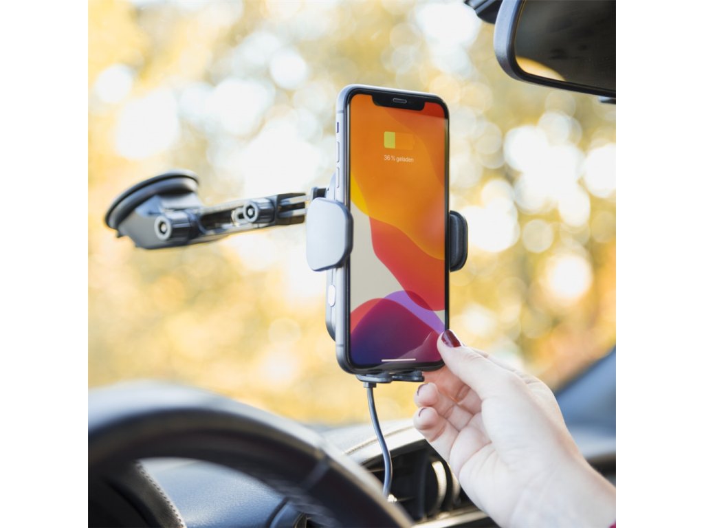 - atasare usoara si stabila la grila de ventilatie cu ajutorul unei cleme, sau la parbriz folosind o ventuza telescopica