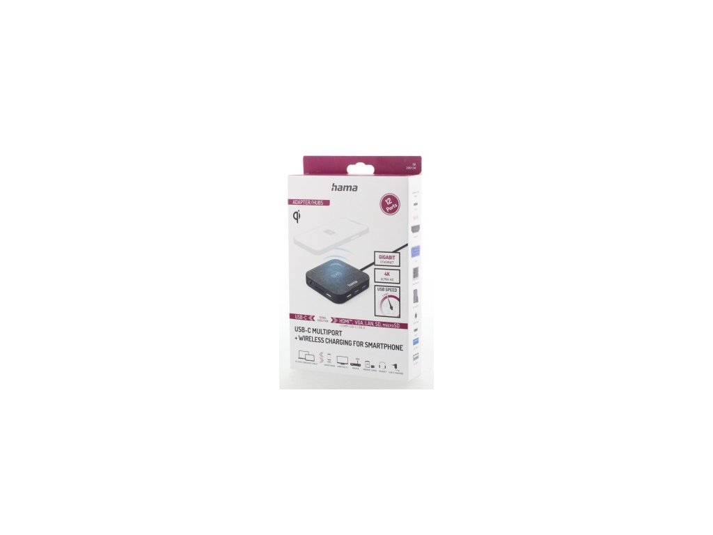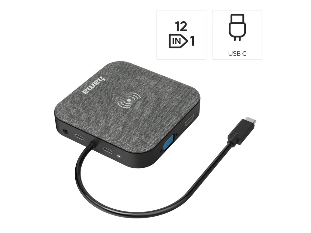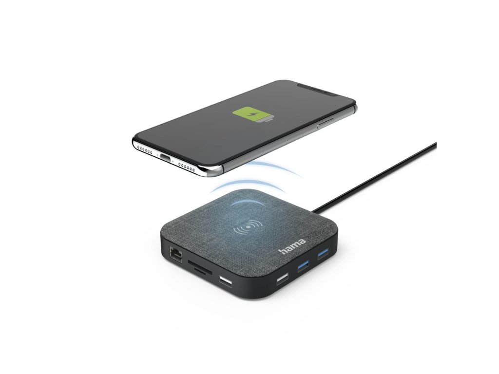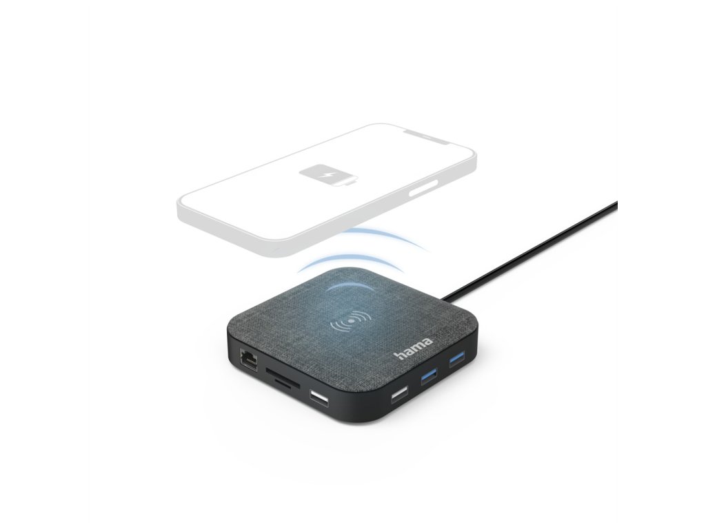 Hama USB-C hub Connect2QiCharge, bezdrôtové nabíjanie, 12 pripojení
