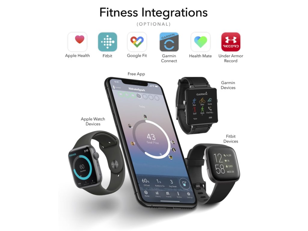 Cum funcționează totul? Sticla inteligentă vă va reaminti când este timpul să beți intermitent. Puteți seta cu ușurință frecvența, forma și culoarea mementourilor strălucitoare în aplicație. HidrateSpark monitorizează nivelul de hidratare al corpului tău pe baza parametrilor corpului tău și a obiectivelor tale. De asemenea, puteți alege notificări suplimentare sau puteți urmări și motiva prietenii. Sticla inteligentă se sincronizează wireless și automat cu aplicația.