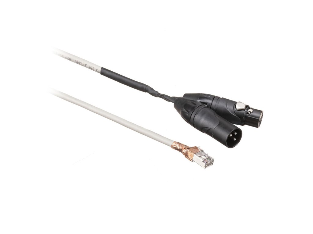 Funcția Cablu Hollyland Ethernet la XLR dublu este un cablu de 6,6 inchi conceput pentru sistemele de interfon în cascadă Hollyland în configurații extinse. Utilizați-l pentru a conecta două sisteme compatibile, cum ar fi un Syscom 1000T cu un Solidcom M1 sau Mars T1000. Este echipat cu un conector RJ45 la un capăt și doi conectori XLR (unul masculin și unul feminin) la celălalt capăt.
