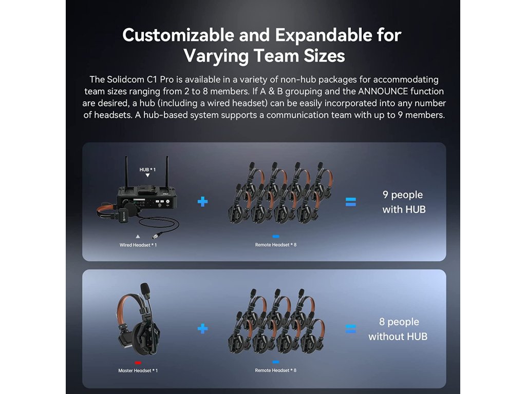 Hollyland Solidcom C1 Pro Hub – 8S (sistem de interfon fără fir cu HUB și 9...