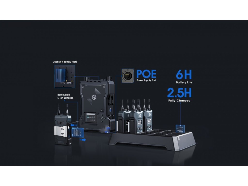 Alimentare: PoE/NP-F (Station), baterie LiPo 1500mAh (Beltpack)