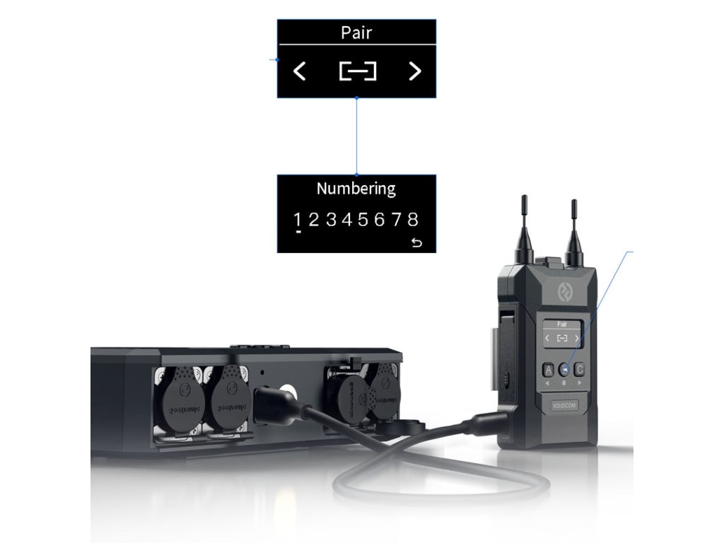 Configurarea grupurilor cu Solidcom M1 este o experiență intuitivă. Este la fel de ușor ca să selectați anumite numere de centură și să creați un grup din ele. Fie prin stația de bază, APP Hollyland sau site-ul web, un grup poate fi creat și gestionat în câteva secunde. Sistemul acceptă până la trei grupuri (echipa de iluminat, echipa de filmare, PA etc.) pentru a aloca în mod flexibil centura membrilor echipei. Echipată cu 4 interfețe diferite - conector de 2W (XLR), 4W (RJ45), alimentare POE/LAN și interfețe în cascadă - stația de bază poate fi conectată în cascadă la mai multe seturi de dispozitive audio diferite doar prin conectarea cu un cablu de rețea standard sau un cablu XLR.