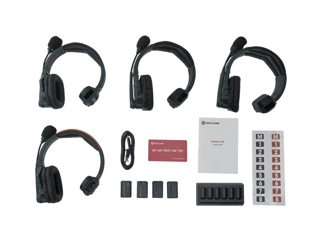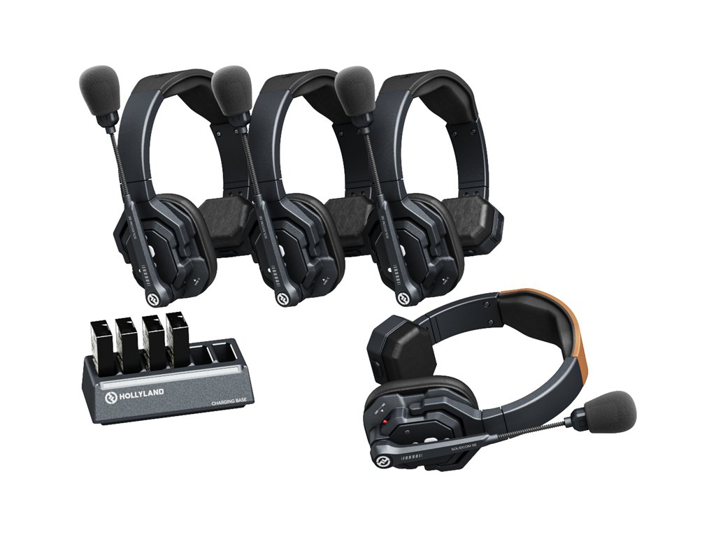 Sistem interfon Hollyland Solidcom SE Global 4S pentru 4 persoane cu căști full duplex cu anulare a zgomotului într-o singură ureche (2,4 GHz)