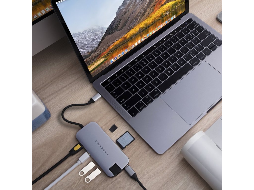 HyperDrive SLIM USB-C este cel mai subțire și mai compact hub USB-C 8-în-1 din lume. Îl puteți conecta cu ușurință la orice computer sau MacBook folosind cablul USB-C încorporat. În practică, puteți utiliza portul de alimentare USB-C de tip pass-through, Gigabit Ethernet flip-out, SD, microSD, 4K HDMI, 4K Mini DisplayPort(Mini Display Port nu acceptă conexiunea pentru Thunderbolt Display și Hard Disk) și 2x USB 3.1.Datorită dimensiunilor sale compacte, ciuperca ocupă foarte puțin spațiu în geantă, astfel încât să o poți purta mereu cu tine. Când îl utilizați, veți aprecia și corpul din aluminiu și cablul USB-C flexibil care se adaptează utilizării dvs. Transformă-ți MacBook-ul într-o stație de lucru puternică.