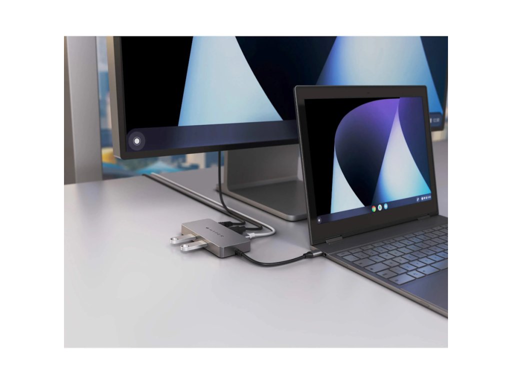 Hyper știe exact ce solicită utilizatorii de la hub-uri - versatilitate, viteză, fiabilitate și confort. Hub-ul lor 5 în 1 îndeplinește perfect toate aceste cerințe. Cele două porturi USB-A ale sale impresionează printr-o viteză de transfer de până la 5 Gb/s pentru transfer de date și fișiere foarte rapid. De asemenea, ofera posibilitatea incarcarii rapide a dispozitivelor conectate datorita tehnologiei USB-C Power Delivery cu o putere de 86 W. Te poti incarca in acelasi timp in timp ce lucrezi sau te joci, niciunul dintre ele nu trebuie sa mearga lateral. Nu trebuie să uităm de portul Gigabit Ethernet pentru o conexiune de mare viteză și fiabilă de 1 Gb/s la rețelele locale. Extinderea capabilităților Chromebookului este atât de ușoară cu acest hub!Cu actualizare automată a firmware-ului OTA și nu este nevoie de alimentare externă