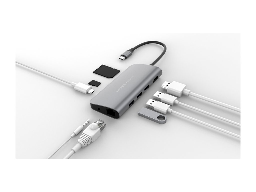 Hub USB-C Hyper® HyperDrive™ POWER 9-în-1 pentru iPad Pro, MacBook Pro/Air - Gri cosmic