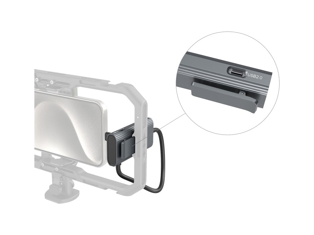 Hub-ul dispune de un port de încărcare PD de înaltă performanță, o interfață USB-C 3.1 și două interfețe USB-C 2.0, permițându-vă să încărcați, să stocați date și să utilizați accesorii USB-C precum microfoane și căști în timp ce filmați cu telefonul.Hub-ul este dotat cu un suport pentru priză rece pentru atașarea ușoară la o priză rece standard sau fixarea pe un dispozitiv.