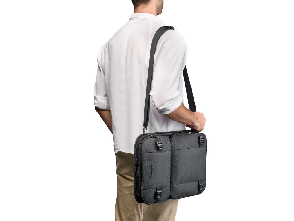 - Poate fi folosită ca geantă de laptop independentă cu cureaua de umăr inclusă