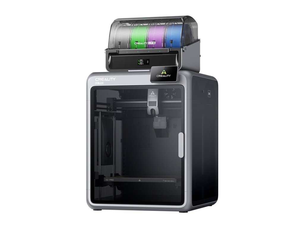Noul modul CFS (Creality Filament System) permite imprimarea simultană cu mai multe filamente. Cu o singură unitate, imprimanta acceptă patru culori, iar când sunt conectate patru, până la 16 culori sau materiale. Unitatea oferă recunoaștere automată a filamentului, gestionare precisă, adăugare automată, protecție împotriva umidității, precum și afișare în timp real a temperaturii și umidității. Drept urmare, K2 Pro vă permite să creați modele complexe, colorate, fără întrerupere sau risipă de material. Notă: Veți găsi un modul CFS în pachet. Dacă doriți să utilizați mai multe culori și materiale, achiziționați unități suplimentare.