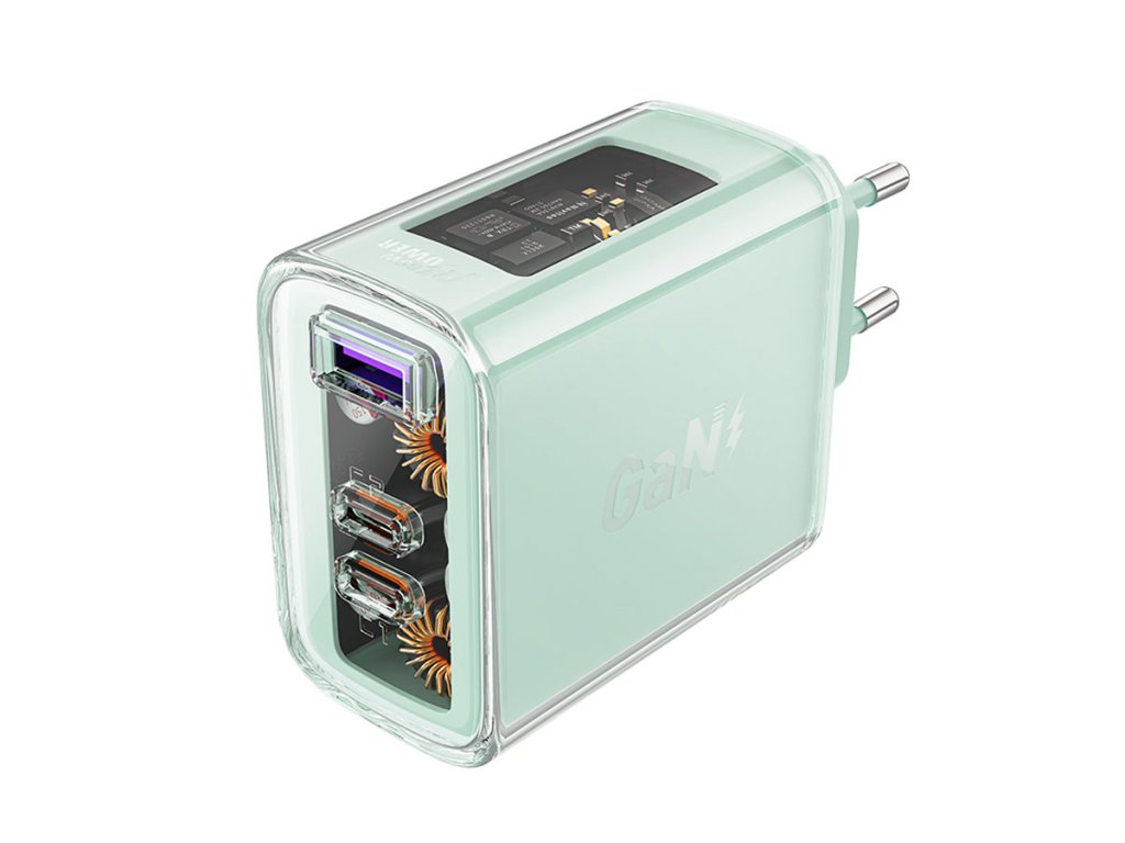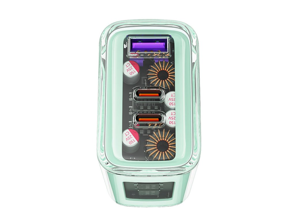 Este clar ce face încărcătorul interesant la prima vedere! A eidesign modern pe scurt, este inconfundabil.Design transparent al cutiei poștale vă oferă posibilitatea de a privi sub capotă și de a admira frumusețea revelată a tehnologiei. Amai multe variante de culoare în nuanțe la modă vă permite să vă exprimați pe deplin stilul personal. Încărcătorul Acefast aredimensiuni aproximativ 9 x 5 x 3 cm si greutate doar 162 g, ce o facecea mai portabila piesa. Da, o astfel de cutie mică poate înlocui trei încărcătoare separate, care, spre deosebire de ea, nu ar încăpea într-un buzunar. Nu ocupa mult spatiu nici pe masa de lucru, nici in geanta de voiaj, pentru care este perfecta.Specificație tehnică