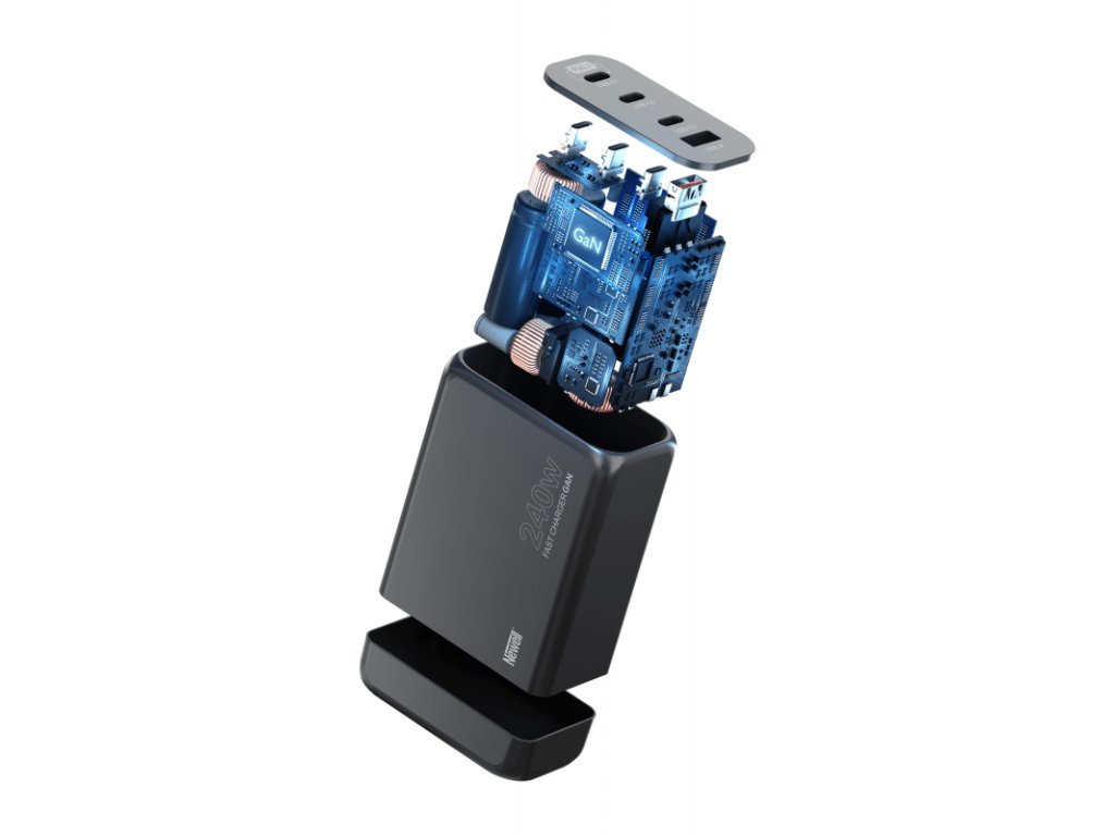 Încărcătorul Newell GaN 240 Watt AC este o soluție versatilă pentru cei care caută o modalitate eficientă de a alimenta dispozitivele electronice. Tehnologia GaN înseamnă nu numai dimensiuni compacte, ci și viteză și eficiență mai mari. Puterea impresionantă de ieșire de 240 W oferă încărcare instantanee pentru aproape orice laptop de pe piață, permițându-vă în același timp să reumpleți alte dispozitive pe care le dețineți. La bord veți găsi 3 porturi USB-C și 1 port USB-A. Varianta UE cu priză „europlug” garantează compatibilitatea cu aproape toate prizele europene. Încărcătorul acceptă o tensiune de la 100 până la 240 V și o frecvență de 50-60 Hz, ceea ce îl face potrivit pentru utilizare în întreaga lume. Produsul vine cu o garanție de producător de 40 de luni. Caracteristici principale ale produsului încărcător universal de rețea care oferă 3 porturi USB-C și 1 port USB-A puterea maximă de ieșire a dispozitivului este de până la 240 de wați Modelul UE - include cablu de încărcare cu mufă „europlug”, care este compatibil cu aproape toate prizele europene utilizări tehnologia inovatoare de încărcare rapidă GaN (folosirea nitrurii de galiu) mai rapidă și mai eficientă decât încărcătoarele obișnuite cu siliciu o putere mare de ieșire va încărca rapid și convenabil aproape orice laptop disponibil pe piață compatibil cu mii de modele de smartphone-uri și tablete, căști și alte dispozitive încărcate prin Cablul USB-C sau USB-A susținut de tehnologia Power Delivery 3.1 pentru încărcare sigură și rapidă permite încărcarea convenabilă a 4 dispozitive simultan, posibil de utilizat în întreaga lume (100 - 240 V / 50-60 Hz) echipate cu o serie de protecție împotriva , printre altele, scurtcircuite și supratensiuni Tehnologia revoluționară GaN Tehnologia GaN este o revoluție în lumea electronicelor portabile. La încărcătoarele de acest tip, componentele din siliciu au fost înlocuite cu nitrură de galiu. Soluția inovatoare nu numai că reduce spațiul ocupat de componente, permițând crearea de dispozitive mai mici. Datorită tehnologiei GaN, procesul de încărcare devine, de asemenea, mai rapid și mai eficient. Încărcătorul Newell GaN 240 Watt - EU oferă, de asemenea, mult mai multă putere decât majoritatea încărcătoarelor tradiționale de pe piață. Încărcare convenabilă a laptopurilor Încărcătoarele de mare putere utilizate pentru încărcarea laptopurilor pot ocupa mult spațiu. Newell GaN 240 W - EU vă va permite să vă slăbiți bagajele atunci când fiecare centimetru de spațiu din rucsac sau valiză contează. Un singur încărcător este suficient pentru a reumple puterea din elementele esențiale portabile, constând, de exemplu, dintr-un computer, tabletă, smartphone și consolă de jocuri portabilă. Puterea maximă de ieșire de 240 de wați vă permite să încărcați laptopuri și dispozitive mai solicitante fără a fi nevoie să ajungeți la surse de alimentare mari cu cabluri groase. 4 porturi de încărcare Încărcătorul Newell GaN 240 Watt AC - EU este un economisitor de spațiu și o alegere excelentă pentru cei care călătoresc frecvent. Dispozitivul oferă acces la patru porturi de încărcare - 3 USB-C și cu USB-A. Încărcătorul GaN vă va permite să vă încărcați rapid și convenabil smartphone-ul, tableta, laptopul, ceasul inteligent, cititorul de cărți electronice, lanterna sau alt dispozitiv compatibil USB. Varianta EU plug-in Încărcătorul Newell GaN 240 Watt în varianta UE este cea mai bună alegere pentru cei care îl vor folosi în țările europene (inclusiv Polonia). Cablul de alimentare inclus este încoronat cu o mufă de tip C (cunoscută și sub numele de „europlug”). Este compatibil cu prizele E, F, J și K, ceea ce înseamnă că încărcătorul va fi utilizabil în aproape orice țară europeană. Companionul perfect de călătorie Newell GaN 240 Watt AC Charger - EU este o alegere ideală pentru cei care călătoresc frecvent în întreaga lume. Dispozitivul acceptă frecvențe de 50 și 60 Hz, precum și tensiuni de la 100 la 240 de volți. Când vizitați țări în care sunt folosite alte prize, nu trebuie să căutați un alt încărcător. Doar echipează-te cu un cablu de alimentare compatibil! Protecție și siguranță Încărcătorul Newell GaN 240 Watt - UE este echipat cu o serie de protecție pentru a asigura confortul maxim. Tehnologiile de ultimă generație oferă protecție împotriva supratensiunilor și scurtcircuitelor. Încărcarea sigură și rapidă este acceptată și de standardul Power Delivery 3.1. Lustruit până la ultimul detaliu Calitatea excelentă a construcției aici se traduce prin fiabilitate și viață lungă a încărcătorului. Newell GaN 240 W - EU folosește cipuri și circuite de ultimă generație, care sunt închise într-o carcasă minimalistă. De asemenea, fiecare port a fost semnat corespunzător pentru a facilita gestionarea dispozitivelor conectate. 40 de luni garanție Pariați pe calitate și experiență. Newell este un brand care este pe piață din 2009, specializat în producția de electronice de larg consum. Fiecare produs vine cu o garanție extinsă de 40 de luni. Alegand incarcatorul de retea Newell GaN 240 Watt - EU, sunteti asigurat de suport corespunzator in cazul oricăror defecțiuni legate de funcționarea acestuia! Specificații model: Newell GaN 240 W - curent de intrare UE: 100 - 240 V / 50-60 Hz / 2,8 A putere maximă de ieșire: 240 W număr de porturi disponibile: 4 (1 x USB-A, 3 x USB-C) mufă cablu de alimentare: EU Tensiune de ieșire / curent de ieșire: USB-C 1: 3,3 - 21 V / 5 A, 5 V / 3 A, 9 V / 3 A, 12 V / 3 A, 15 V / 3 A, 20 V / 5 A, 28 V / 5 A (max. 140 W) USB-C 2: 3,3 - 21 V / 5 A, 5 V / 3 A, 9 V / 3 A, 12 V / 3 A, 15 V / 3 A, 20 V / 5 A (max. 100 W) USB-C 3: 3,3 - 11 V / 5 A, 5 V / 3 A, 9 V / 3 A, 12 V / 3 A, 15 V 