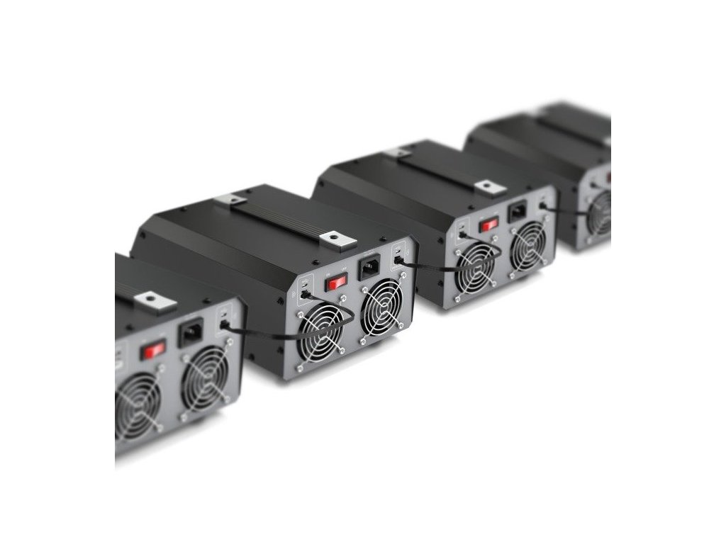 Funcția de sincronizare a încărcătorului permite utilizatorilor să controleze două sau mai multe încărcătoare simultan printr-un cablu de date. Toate încărcătoarele SLAVE vor imita parametrii încărcătorului MASTER, ceea ce scurtează semnificativ timpul de încărcare a multor baterii similare.