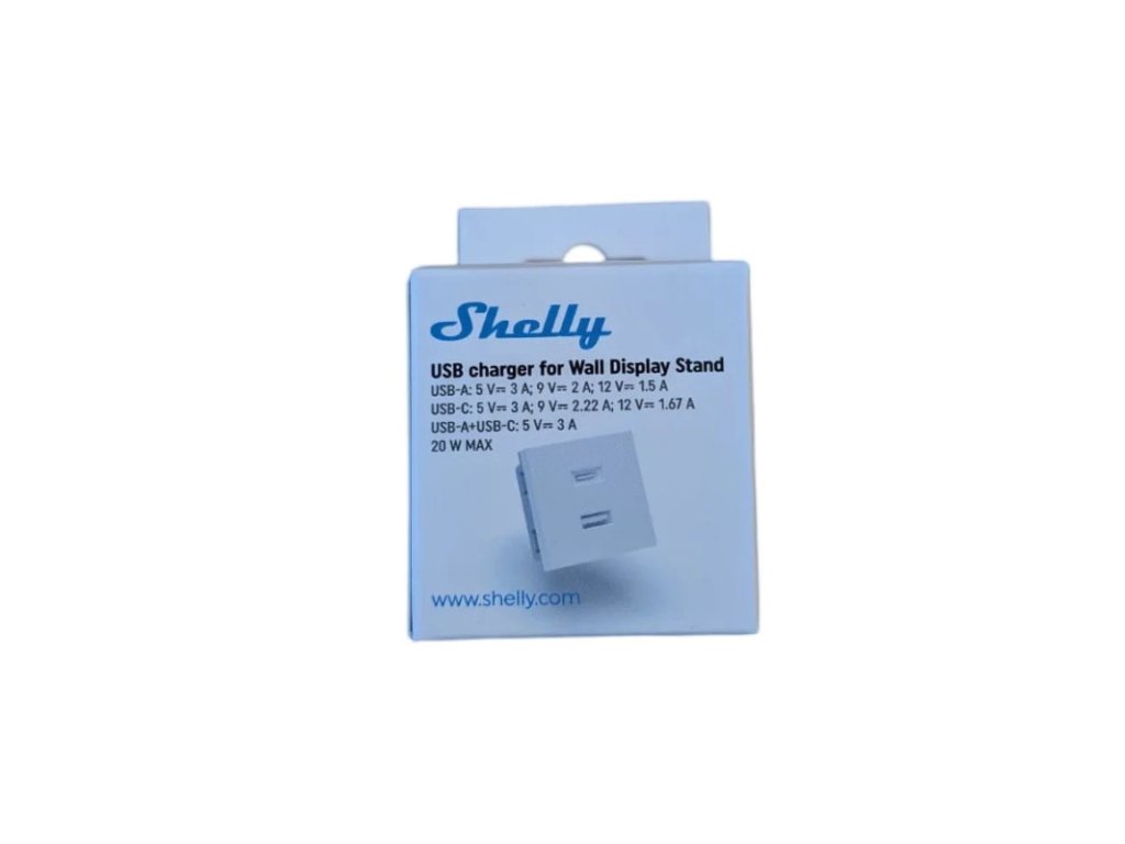 Încărcător USB Shelly pentru suport de afișare de perete, alb - porturi USB pentru suport