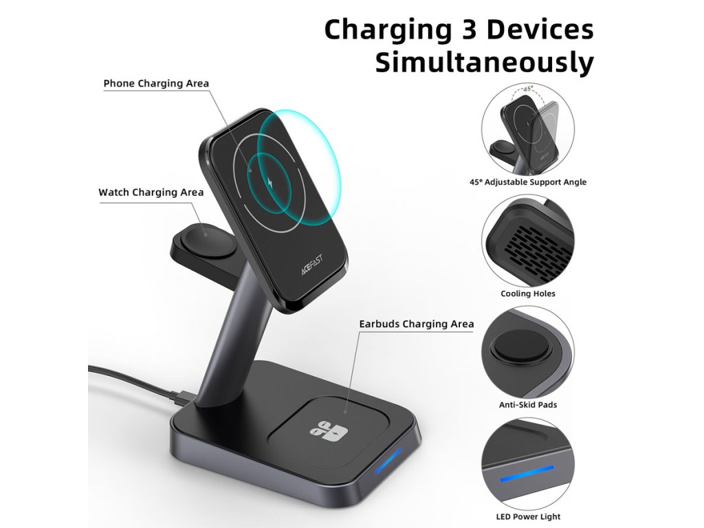 Încărcător wireless 3-în-1 pentru desktop Acefast E3