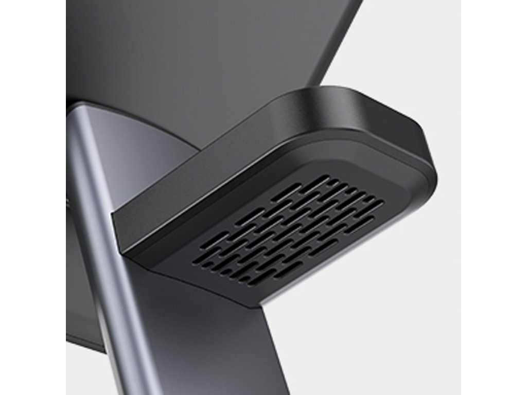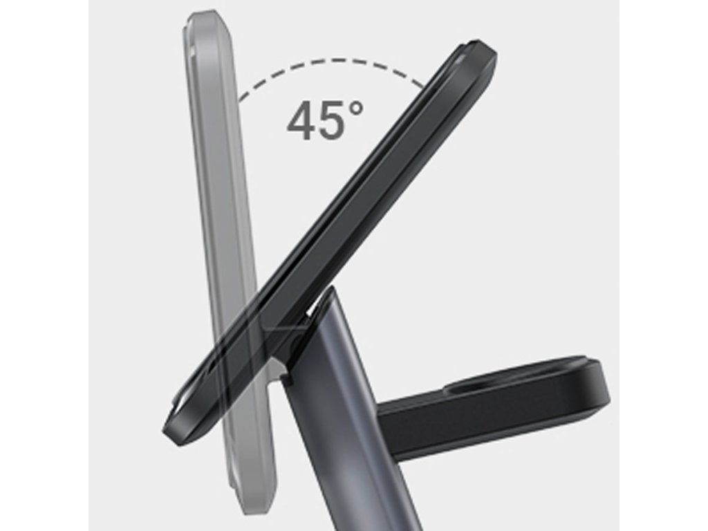 Trebuie doar să clipiți și știți imediat dacă încărcarea este încă în curs sau dacă dispozitivele conectate sunt din nou complet pregătite pentru acțiune. Îți va spune chiar și de la distanțătrei lumini LED colorate pentru secțiuni individuale de încărcare.Ajustabil, unghi de elevație de până la 45° îl veți aprecia pentru controlul confortabil al telefonului în orice circumstanțe. Posibilitatea panoului frontal vă permite să încărcați încărcătorulutilizați ca suport practic când doriți să vizionați filme, să luați notițe sau să participați la apeluri video pe telefon. Stația de încărcare economisește spațiu valoros prinnecesită doar un singur cablu și un încărcător de rețea QC 3.0 pentru a funcționa. Și asta este grozav când cablurile de pretutindeni s-ar putea să te obosească.Notă: Încărcătorul de rețea QC 3.0 nu este inclus.