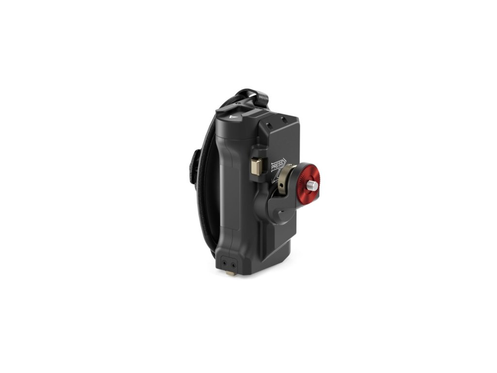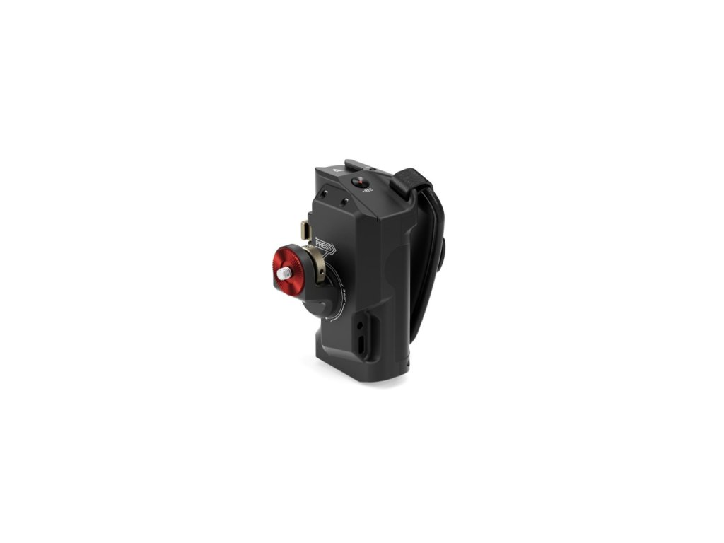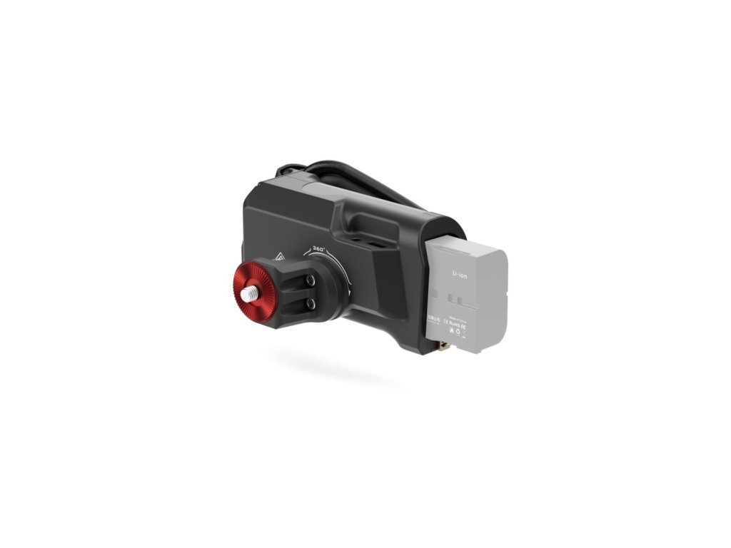 Acest mâner avansat se fixează pe partea dreaptă a cuștilor de înclinare a camerei. Portul pentru baterie din partea de jos a mânerului vă permite să utilizați bateria Sony F570 pentru a alimenta diverse accesorii prin intermediul ieșirilor de alimentare de 8V USB-C și 12V DC.