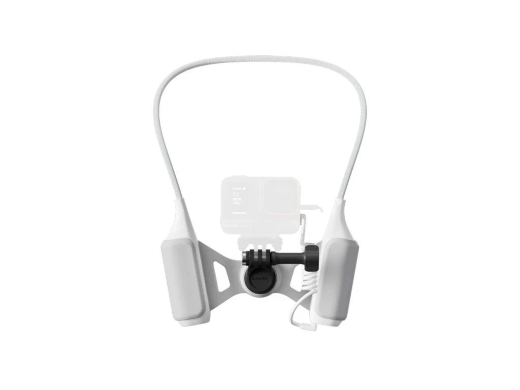 Suportul de gât FOMO Power combină un suport confortabil pentru gât cu o baterie integrată, permițându-vă să prelungiți semnificativ timpul de înregistrare fără întrerupere. Ideal pentru înregistrări lungi, vlogging sau creații care durează toată ziua.