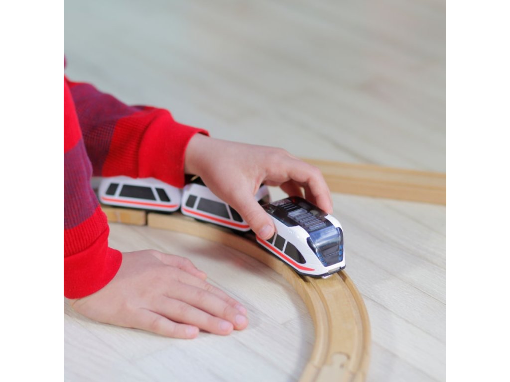 Combină acest kit cu alte module de expansiune pentru a crea o pistă care este și mai complexă și distractivă! Toate accesoriile pentru piese Intelino sunt compatibile între ele și extrem de versatile, astfel încât să poți deveni cu adevărat creativ cu jocul tău. Toate piesele sunt realizate din material plastic PP durabil și ecologic. Acesta din urmă va supraviețui chiar și accidentelor care se întâmplă uneori în lumea redusă a șinelor și a mașinilor.Conținutul pachetului
