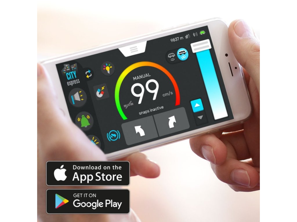 Aplicația bogată în funcții poate fi descărcată gratuit pentru smartphone-uri și tablete cu suport Bluetooth Smart (BLE 4.0+) șiiOS din versiunea 8.0 (compatibil cu iPhone, iPad și iPod touch) sauAndroid din versiunea 5.0. Nu trebuie să vă faceți griji cu privire la actualizări, deoarece firmware-ul trenului este actualizat prin aer (OTA). |