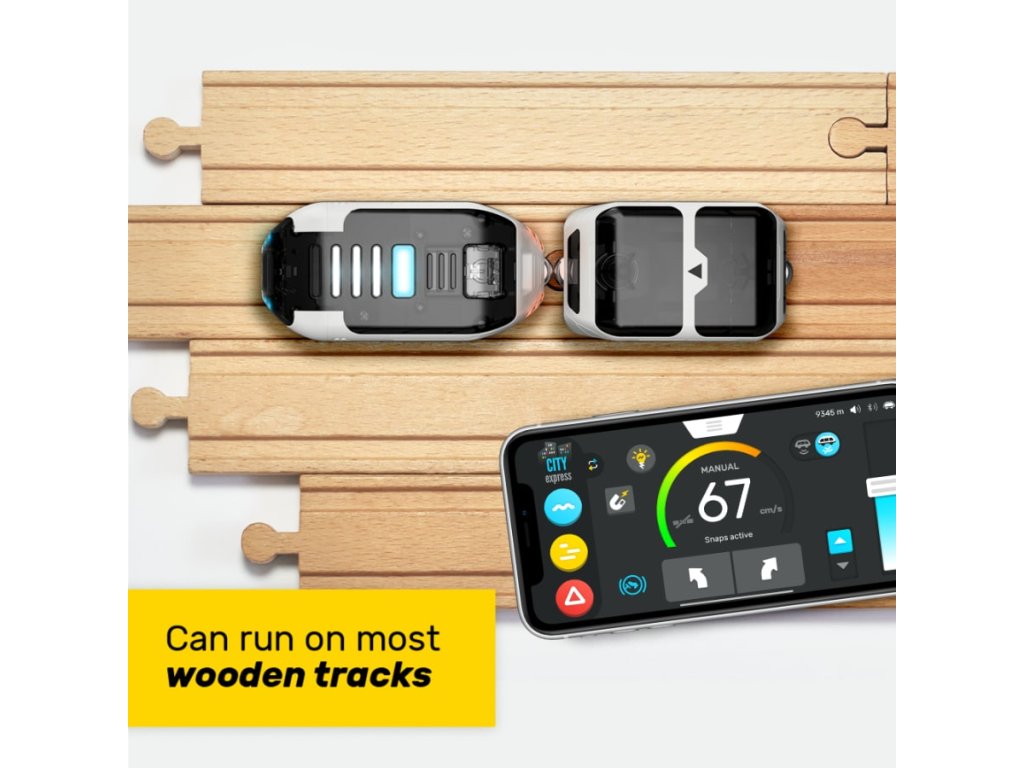 Un vechi joc intuitiv și familiar și cu trenul. Intelino are propriile șine inteligente și poate fi conectat și la o șină clasică de tren din lemn pe care o aveți acasă. |