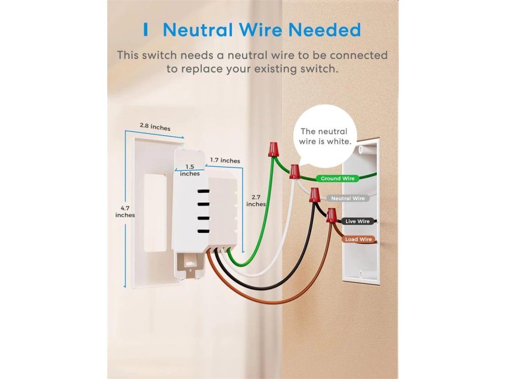 Înainte de a cumpăra un întrerupător de lumină inteligent, asigurați-vă că cutia electrică are un fir neutru (în alb). Dacă nu sunteți sigur, faceți o fotografie cu interiorul cutiei electrice și trimiteți-ne-o. Îl putem verifica pentru tine la timp.