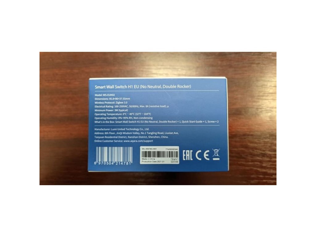 Întrerupător inteligent de perete AQARA H1 EU (fără neutru, basculant dublu) (WS-EUK02) - Întrerupător Zigbee cu releu dublu