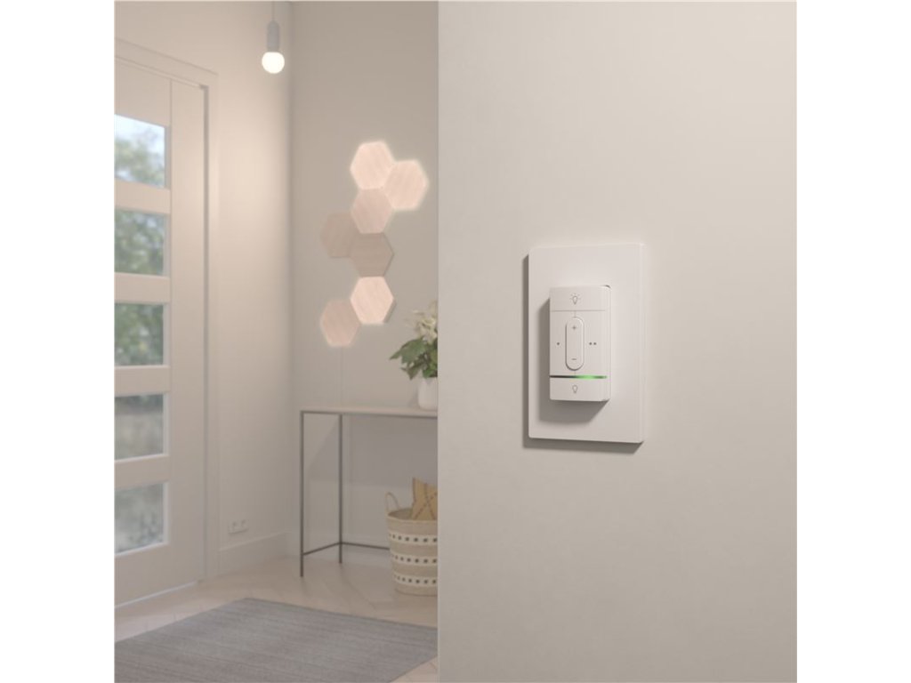 - Controlează mai multe lumini (sau dispozitive) de la un singur comutator. Aceste comutatoare wireless personalizabile adaugă un alt punct de control pentru luminile tale inteligente, pe lângă aplicația Nanoleaf sau ecosistemul casei tale inteligente. Montază-l pe perete (nu necesită cabluri), așează-l pe o suprafață magnetică sau folosește-l ca telecomandă portabilă.