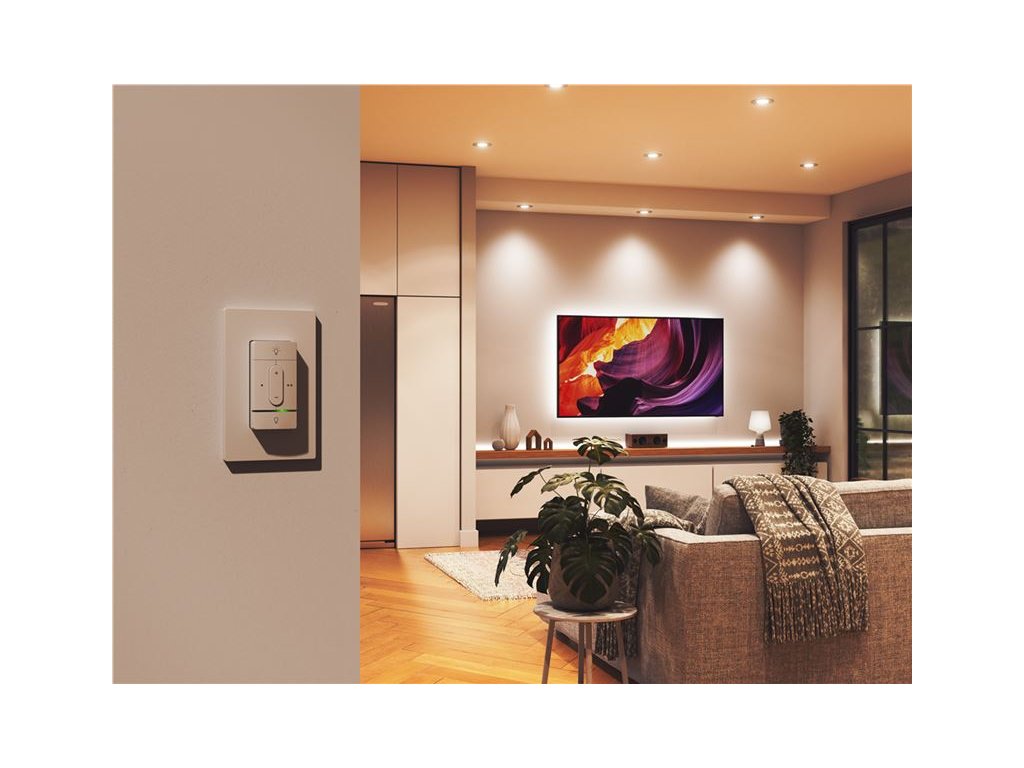 - Comutator wireless pentru control convenabil oriunde, fără a fi nevoie de cabluri fixe. Folosește-l ca o telecomandă portabilă pe care o poți muta prin casă sau montează-l pe perete pentru a funcționa ca un întrerupător de lumină mai tradițional. Nu necesită tăiere, găurire sau cablare.