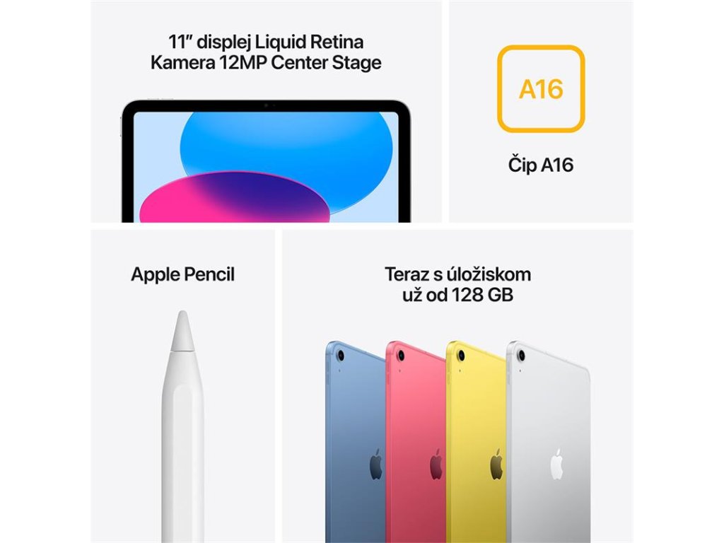 Noul iPad de 11 inci dispune de puternicul cip A16, un ecran Liquid Retina, camere avansate și Wi-Fi 6 și 5G rapide. Cu un conector USB-C și patru culori frumoase, îți oferă opțiuni inteligente la un preț pe care îl vei adora.