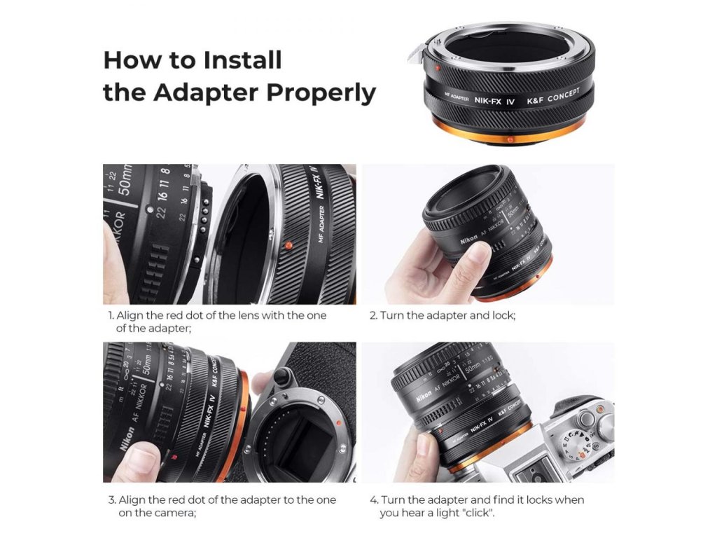 K&F Concept 2022 Montajul adaptor pentru obiective NIK-FX IV PRO de înaltă precizie cu design nou