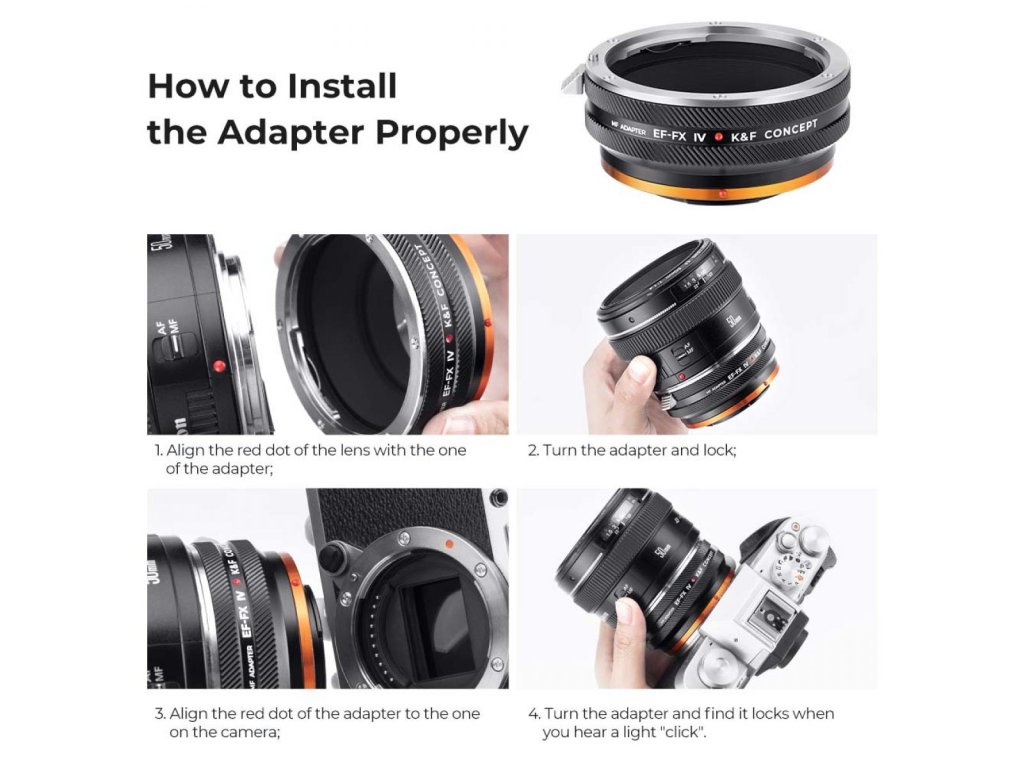 K&F Concept 2022 Montură adaptor pentru obiective de înaltă precizie cu design nou, EF-FX IV PRO