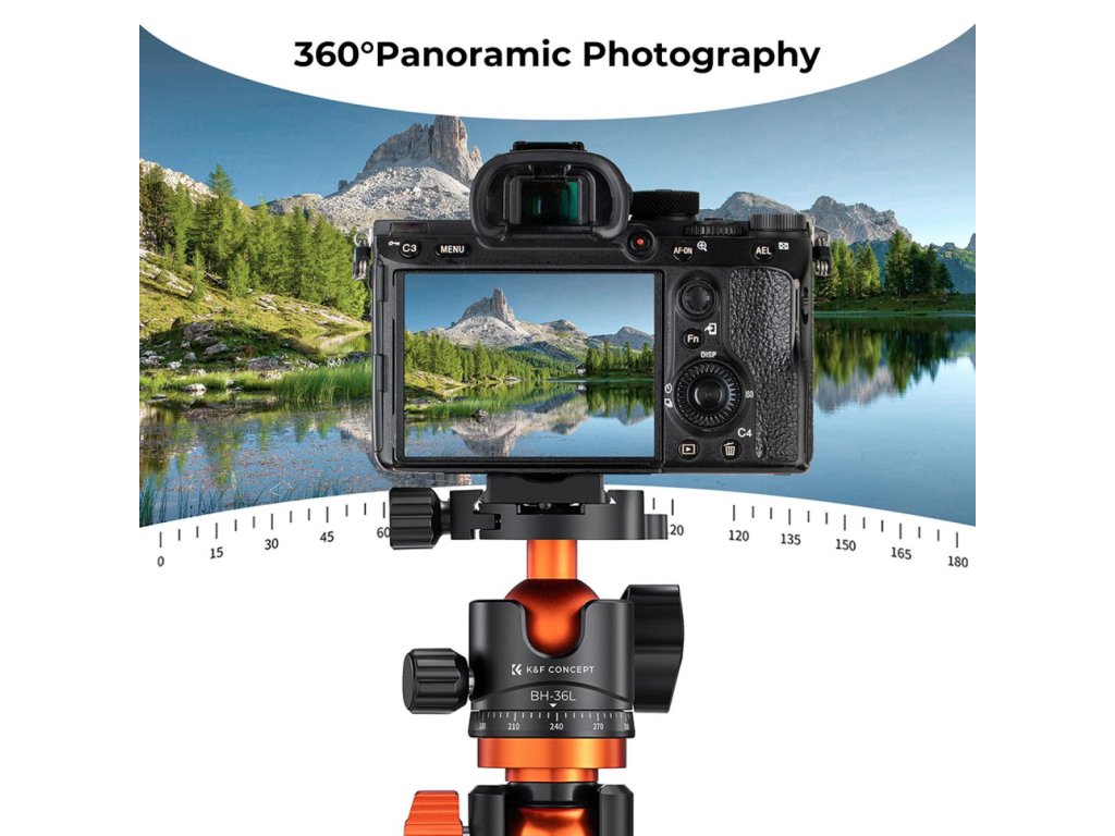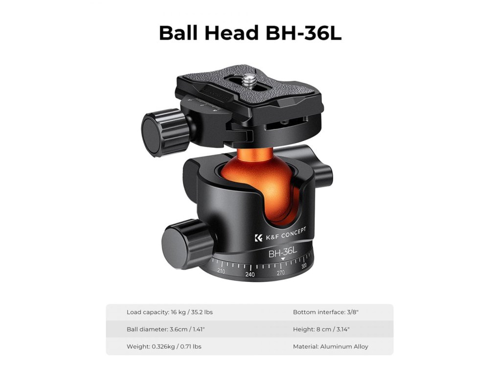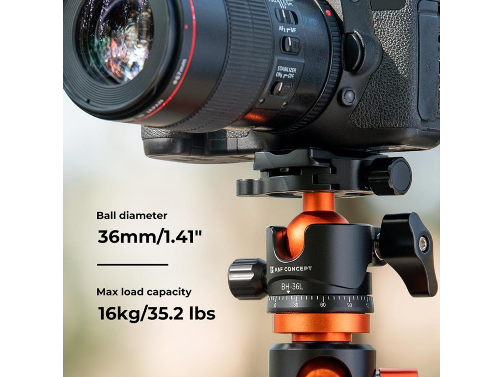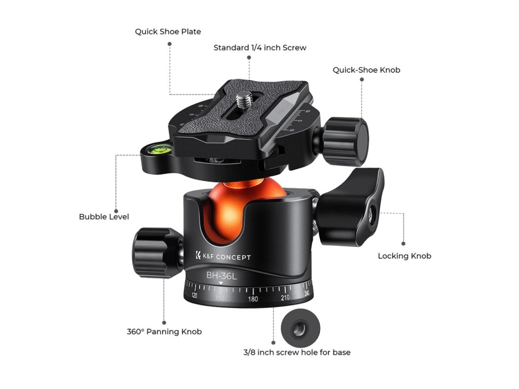 K&F Concept 36mm cap sferic trepied panoramic rotativ la 360 de grade pentru monopied