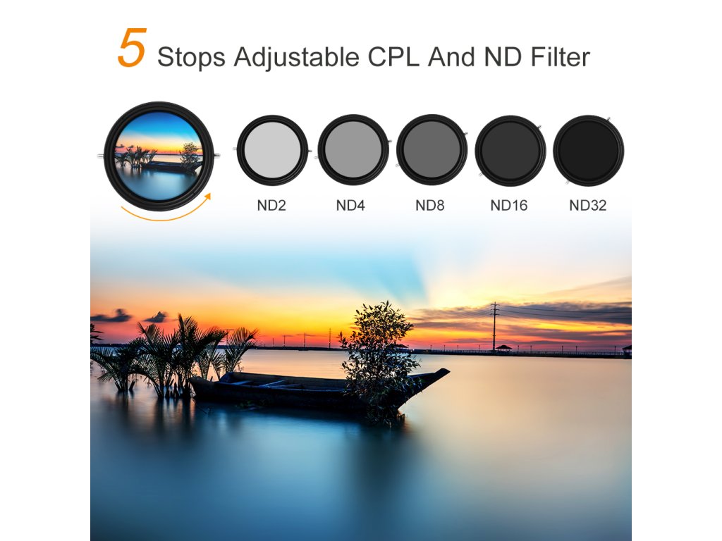 K&F Concept 55MM Nano-X CPL + Variabil/Fader NDX ND2 ~ ND32, Impermeabil, rezistent la...