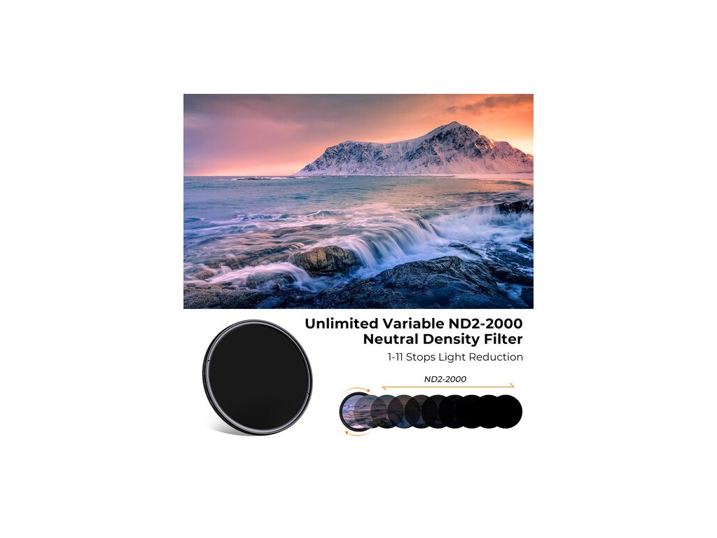 Filtrul de obiectiv ND2-ND2000 din seria C de 62 mm de la K&F Concept este un filtru circular cu densitate neutră variabilă din seria clasică K&F, denumită și seria C.