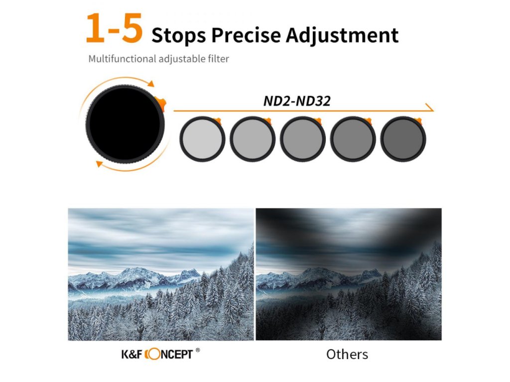 K&F Concept 67mm, ceață neagră reglabilă multifuncțională1/4&ND2~32, HD
