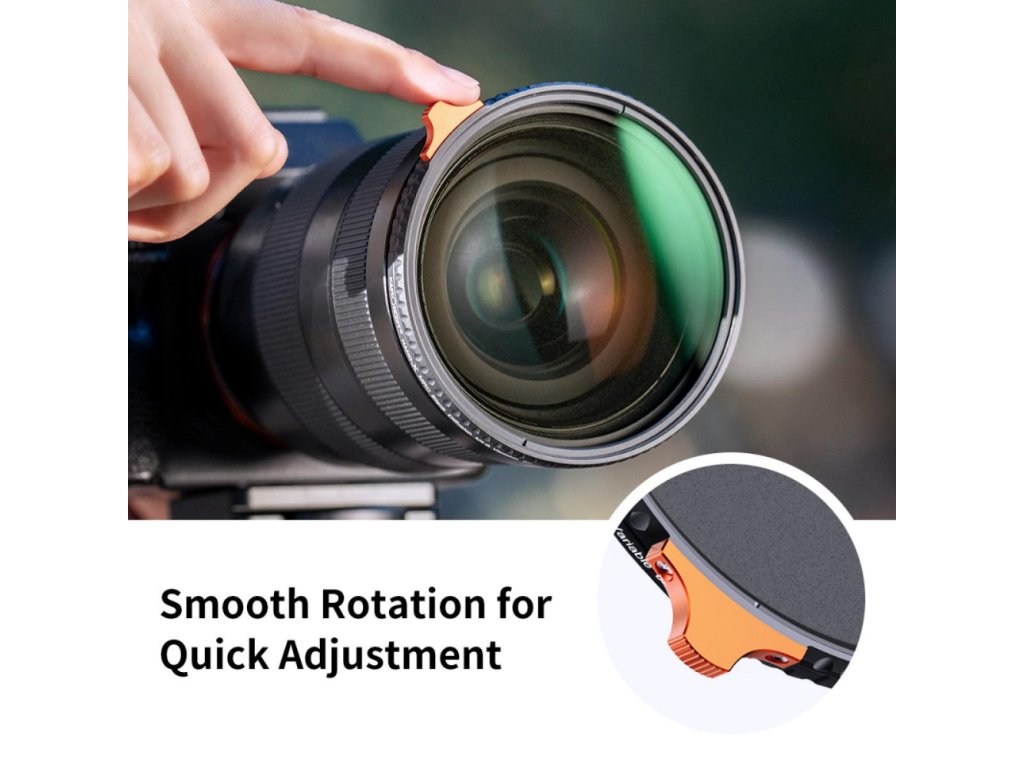 Filtrul negru difuzat 1/4 din sticlă optică profesională menține transmisia standard de 84%. Tehnologia de lustruire pe două fețe asigură o imagine HD și claritate chiar și pe un obiectiv cu unghi larg.