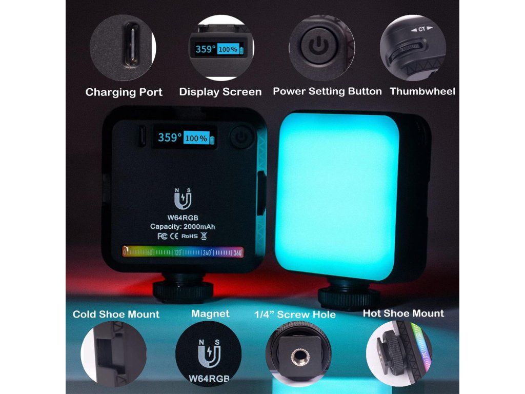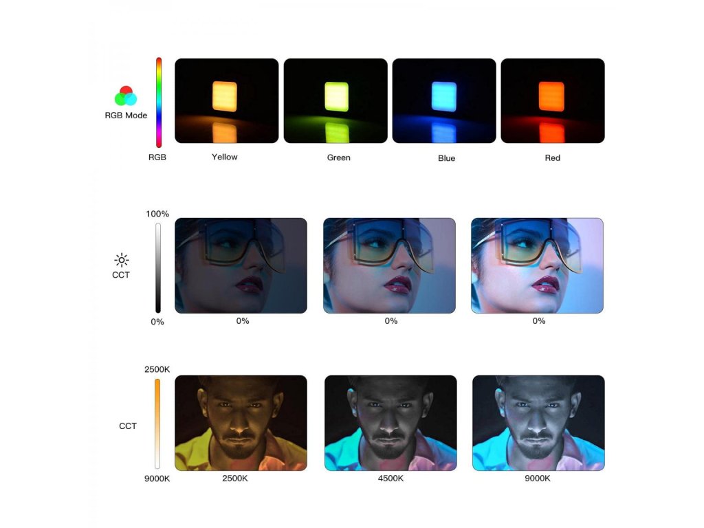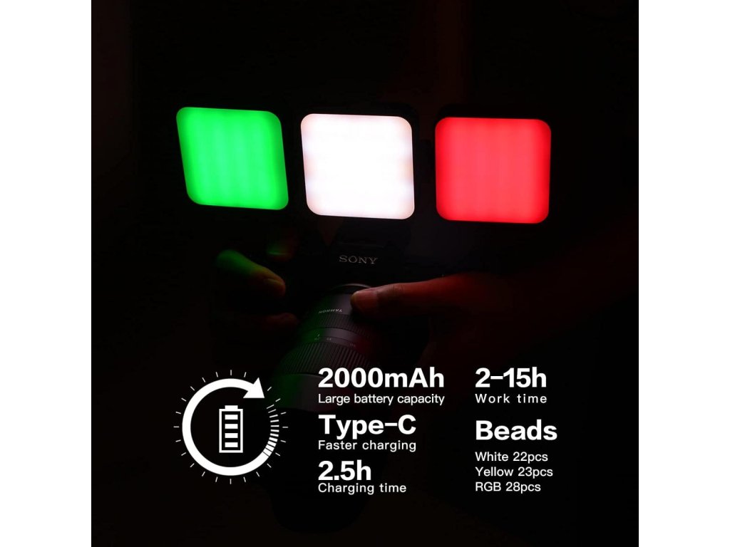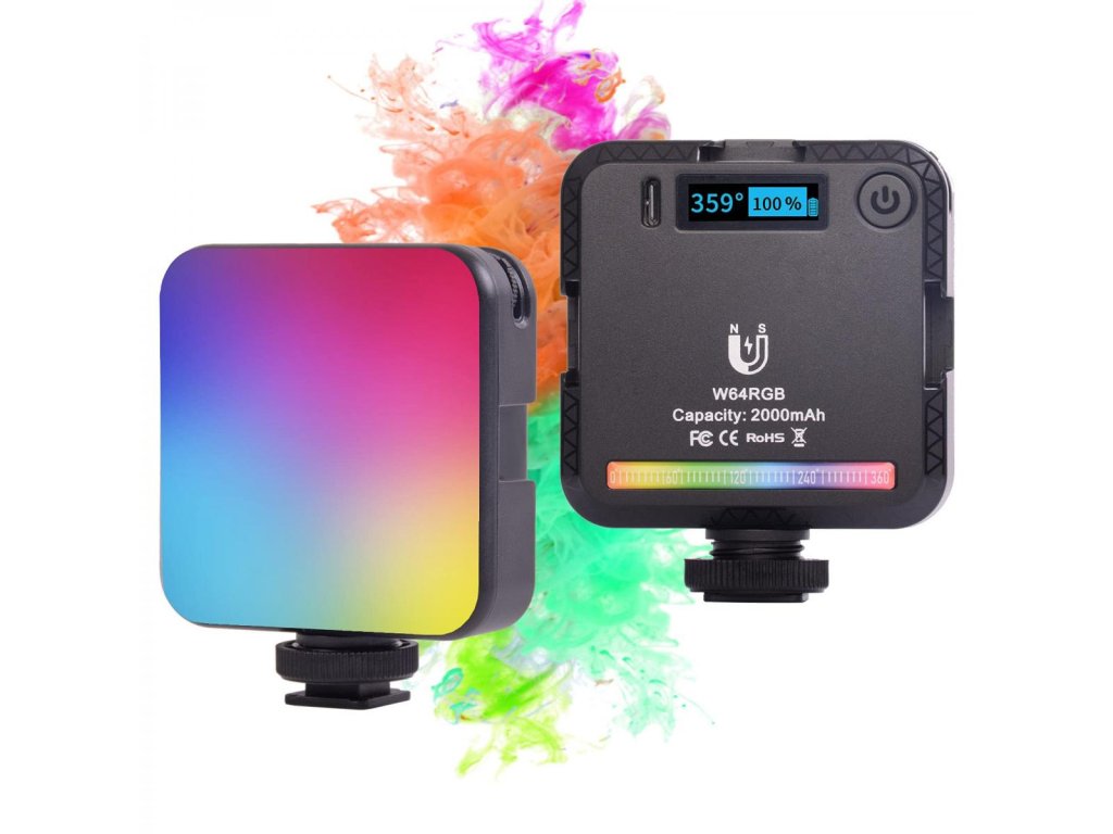 Mini lumină de umplere de 6W, colorată, RGB, pentru buzunar, baterie reîncărcabilă încorporată de 2000 mAh.