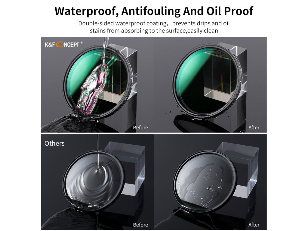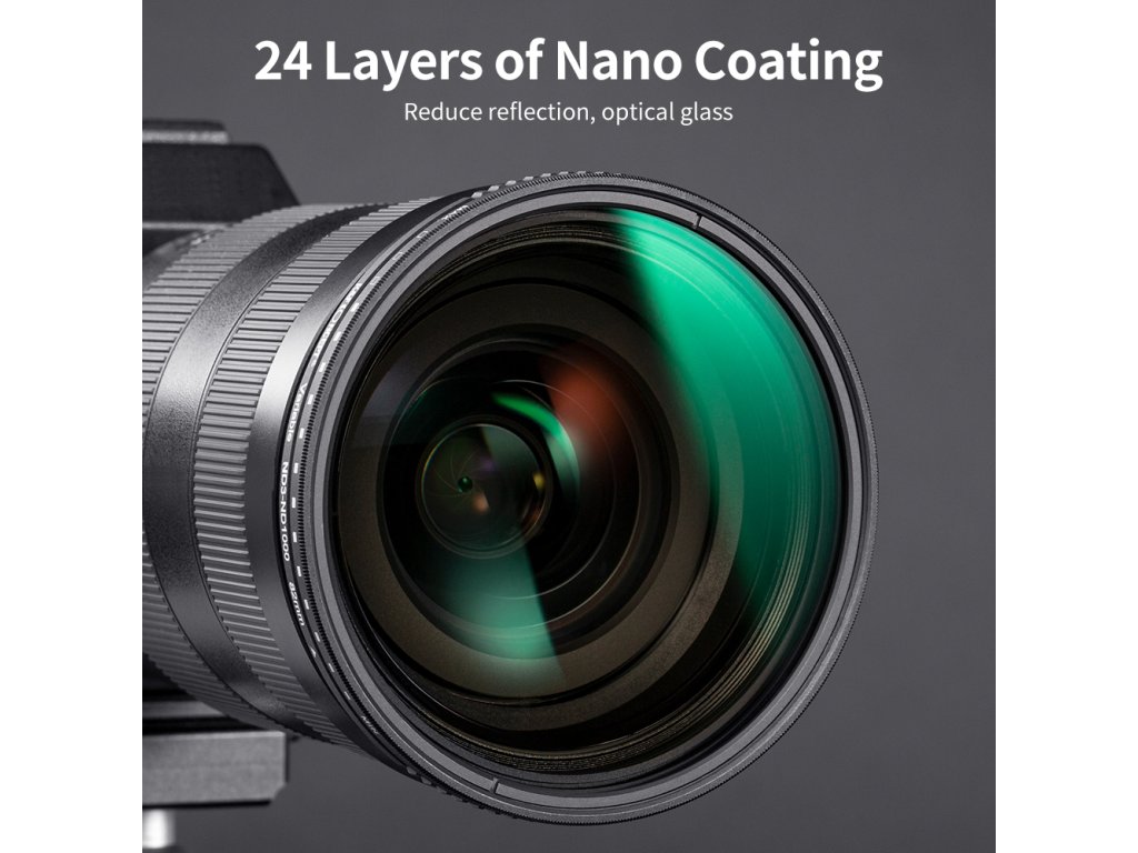 - * ?Extrem de subțire? Cadrul filtrului are doar 7,4 mm, cadrul anti-alunecare CNC super ușor ajută la instalarea și îndepărtarea filtrului rapid și ușor. Vignetarea poate fi evitată în mod eficient atunci când fotografiați fotografii cu unghi larg.