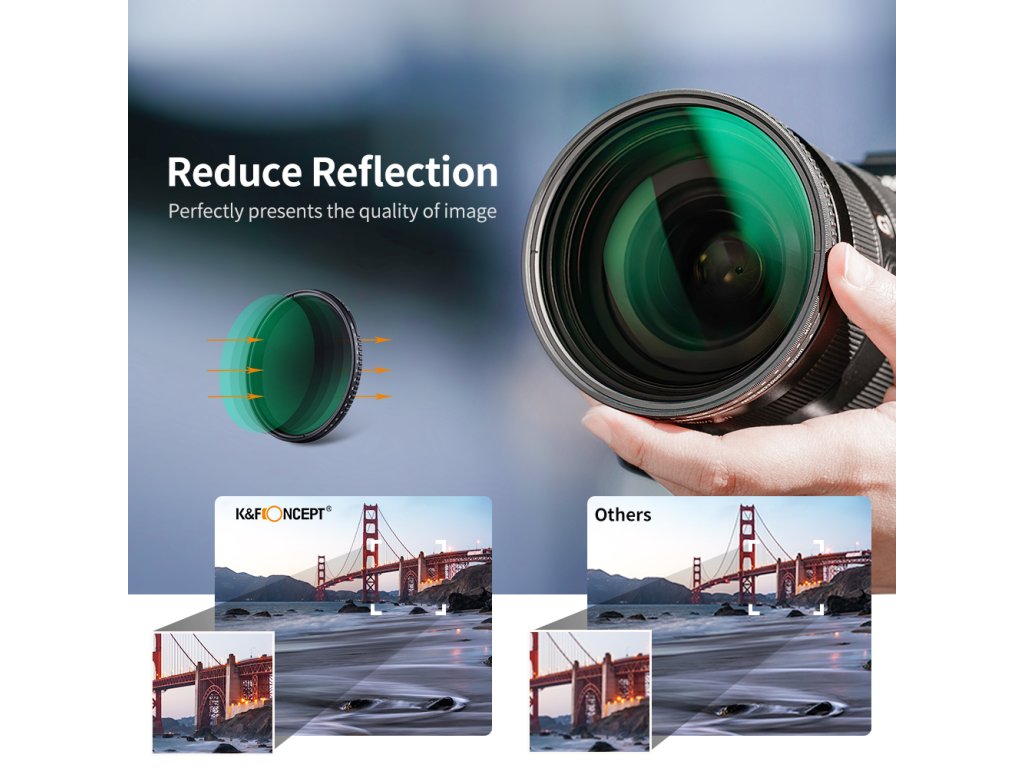K&F Concept 77mm, ND3-1000, ND variabil ultra subțire, impermeabil, acoperire verde