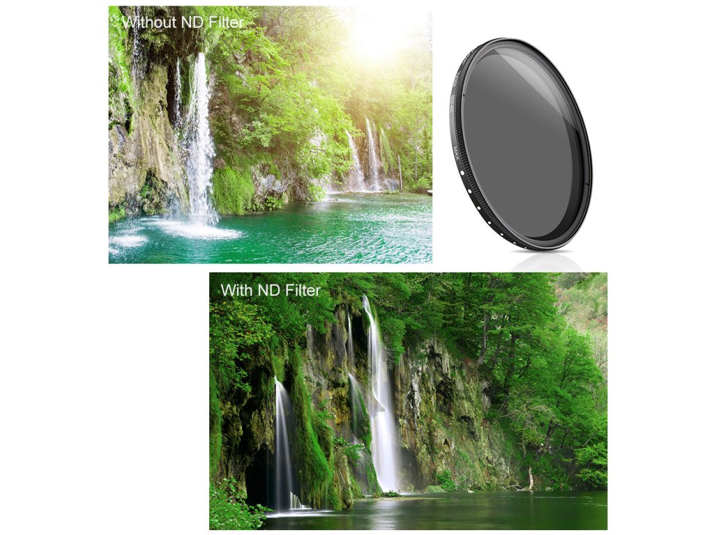 - Permite utilizarea unor viteze mici de expunere pentru a capta mișcarea subiecților precum cascade și oferă efectul de curgere netedă a apei.