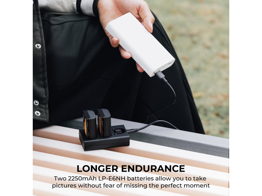 Bateria LP-E6NH de la K&F CONCEPT este compatibilă cu camerele Canon care utilizează baterii LP-E6NH/LP-E6N/LP-E6, cum ar fi Canon EOS R5, EOS R6, EOS R, EOS 5D Mark IV, 5D Mark III, 5DS , 5DS R, 5D Mark II, 6D, 6D Mark II, 7D, 7D Mark II,90D, 80D, 70D, 60D, 60Da (Notă: Cele de mai sus sunt doar câteva dintre modelele enumerate)