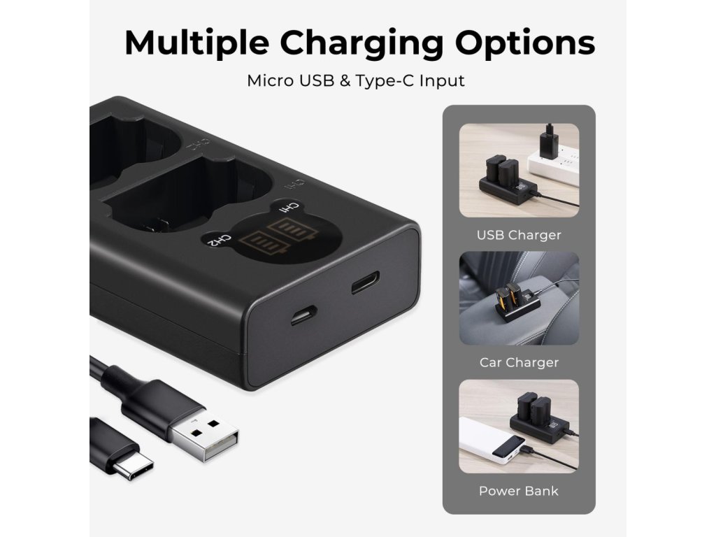 - * ?Mai multe opțiuni de încărcare? Acest încărcător de baterie NP-W235 are două opțiuni de încărcare: cu două porturi de intrare Micro USB și Type-C, opțiuni mai convenabile de încărcare a bateriei cu încărcător de perete USB, încărcător de mașină sau alimentare externă mobilă
